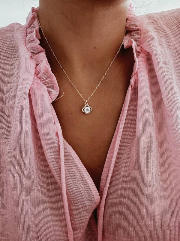 Ketting | bloemetje met diamantjes - goud