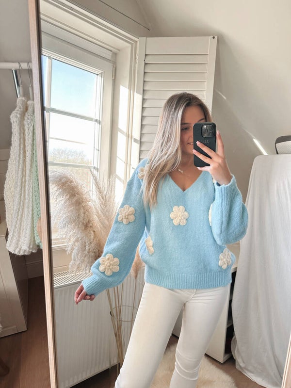 Babyblue embroidered flowers knit