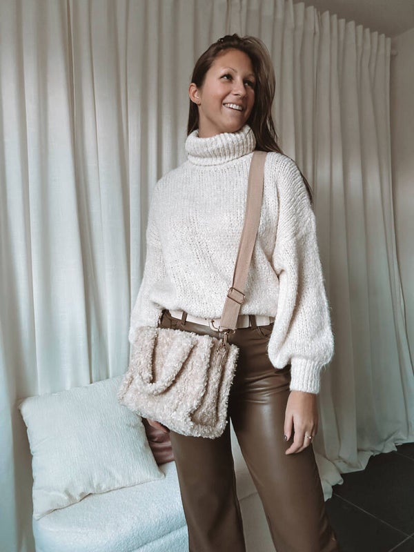 Productomschrijving: Er zit een lint aan de handtas zodat je zelf kan kiezen op welke lengte je deze draagt. Het lint kan er ook gemakkelijk afgehaald worden.
